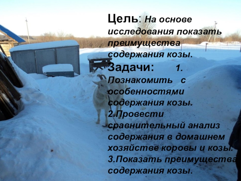 Цель: На основе исследования показать преимущества содержания козы.
