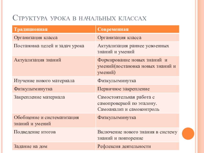 Слайд 4Структура урока в начальных классах