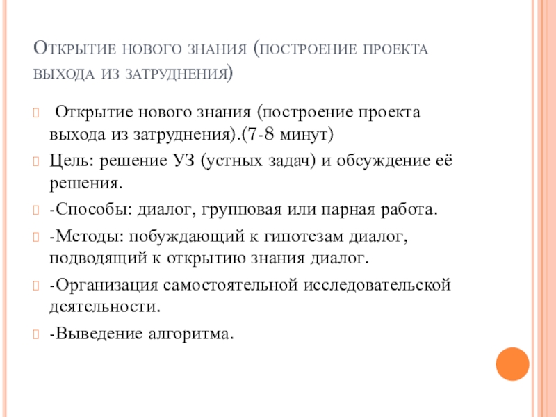 Слайд 8Открытие нового знания (построение проекта выхода из затруднения)