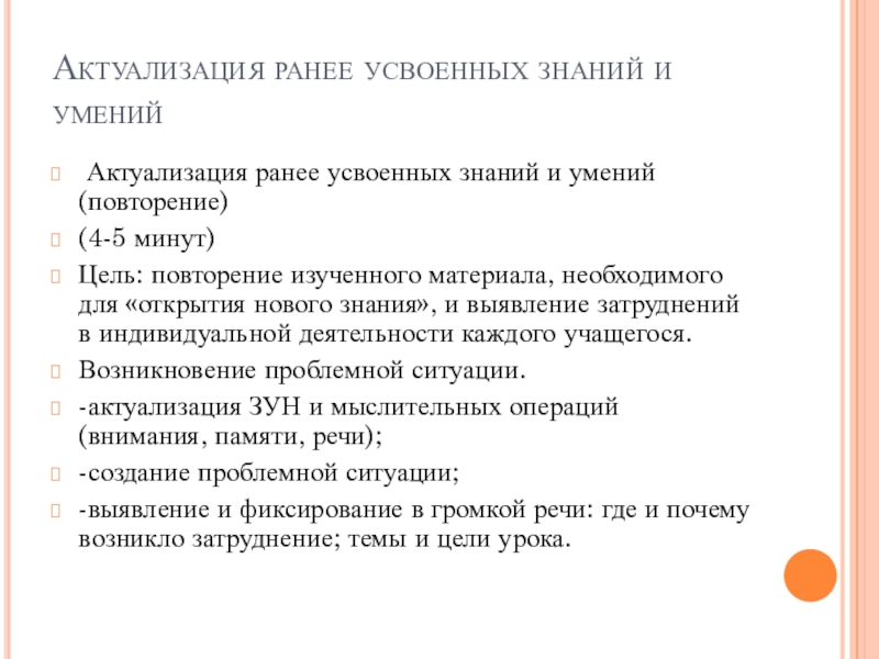 Актуализация ранее усвоенных знаний