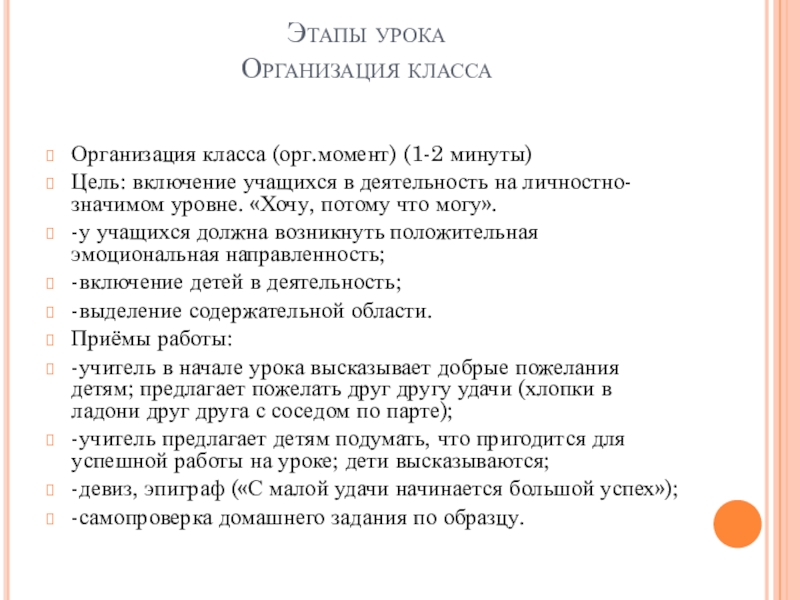 Организация класса (орг.момент) (1-2 минуты)