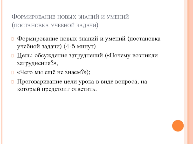 Слайд 7Формирование новых знаний и умений (постановка учебной задачи)