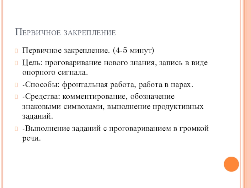 Слайд 10Первичное закрепление