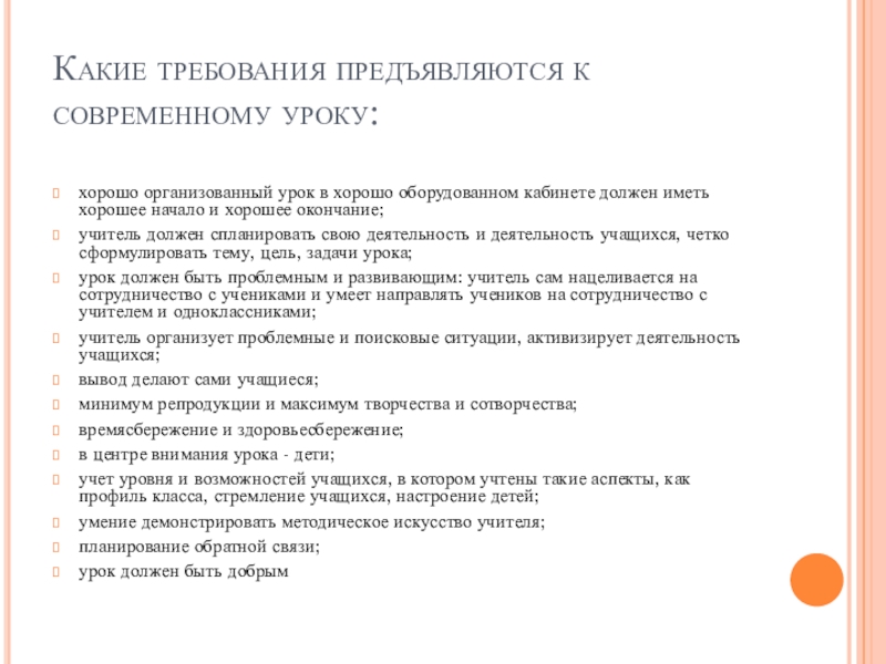 Слайд 17Какие требования предъявляются к современному уроку: