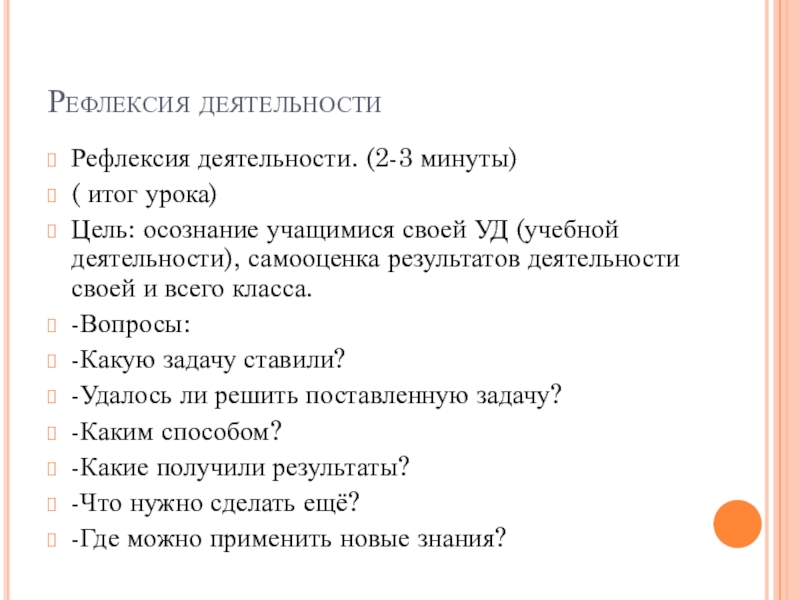 Рефлексия деятельности. (2-3 минуты)