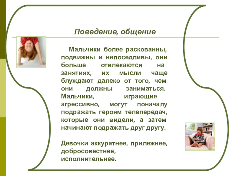 Мальчики более раскованны, подвижны и непоседливы, они больше