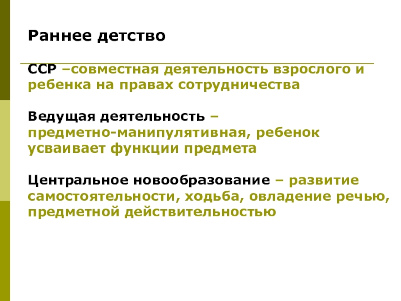 ССР –совместная деятельность взрослого и ребенка на правах сотрудничества
