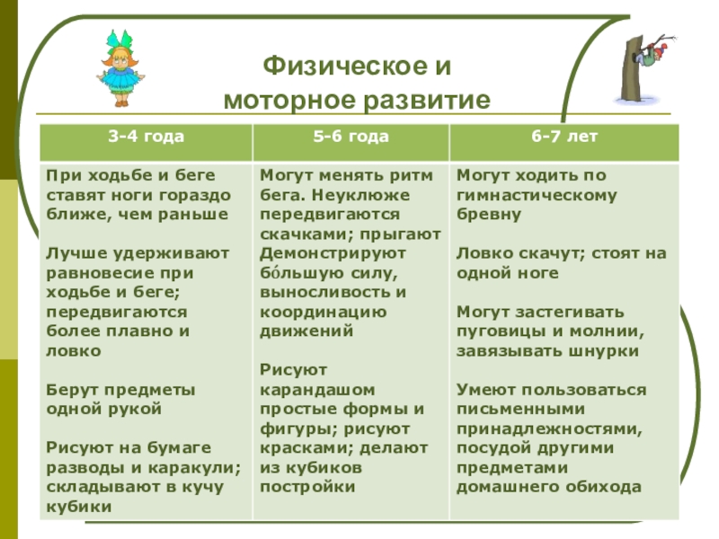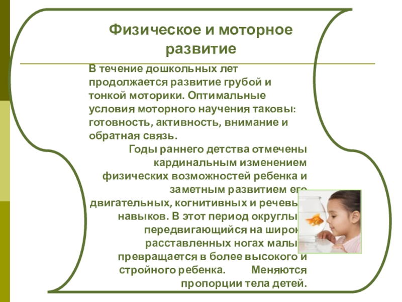 В течение дошкольных лет продолжается развитие грубой и тонкой моторики. Оптимальные