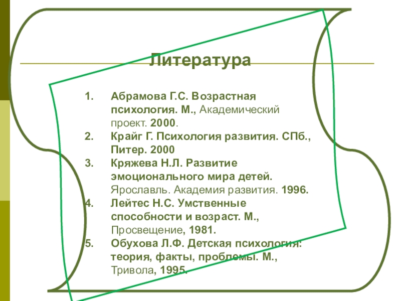 Обухова Л.Ф. Детская психология: теория, факты, проблемы. М., Тривола, 1995.