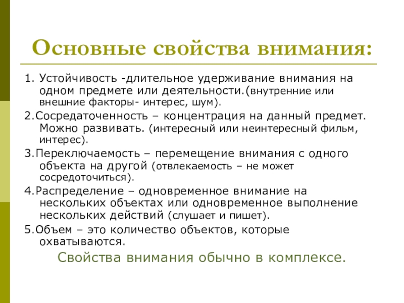 Свойства внимания обычно в комплексе.