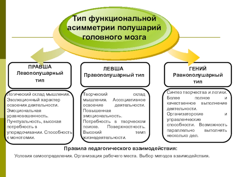 Синтез творчества и логики. Более полное и качественное выполнение деятельности. Организаторские и управленческие способности. Возможность параллельно выполнять несколько дел.