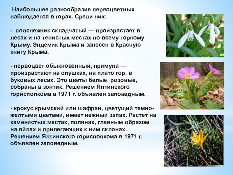 Слайд 3 Давайте поговорим о заповедных первоцветах Крыма. Тех самых, которые за