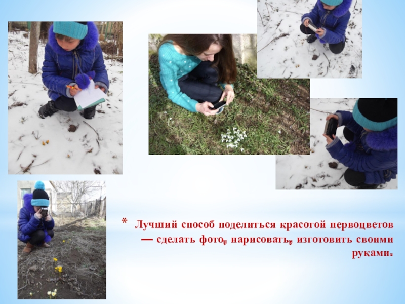 Слайд 14Лучший способ поделиться красотой первоцветов — сделать фото, нарисовать, изготовить своими
