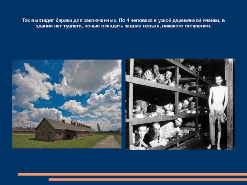 Слайд 12Так выглядят бараки для заключенных. По 4 человека в узкой деревянной