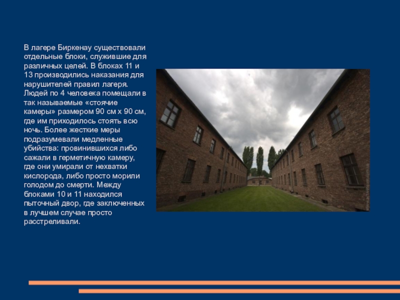 Слайд 18В лагере Биркенау существовали отдельные блоки, служившие для различных целей. В