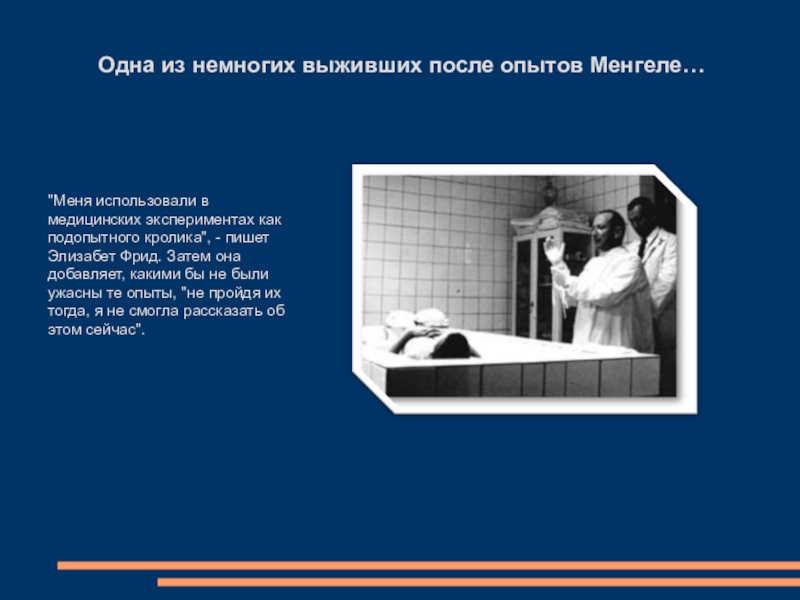 Слайд 17Одна из немногих выживших после опытов Менгеле…