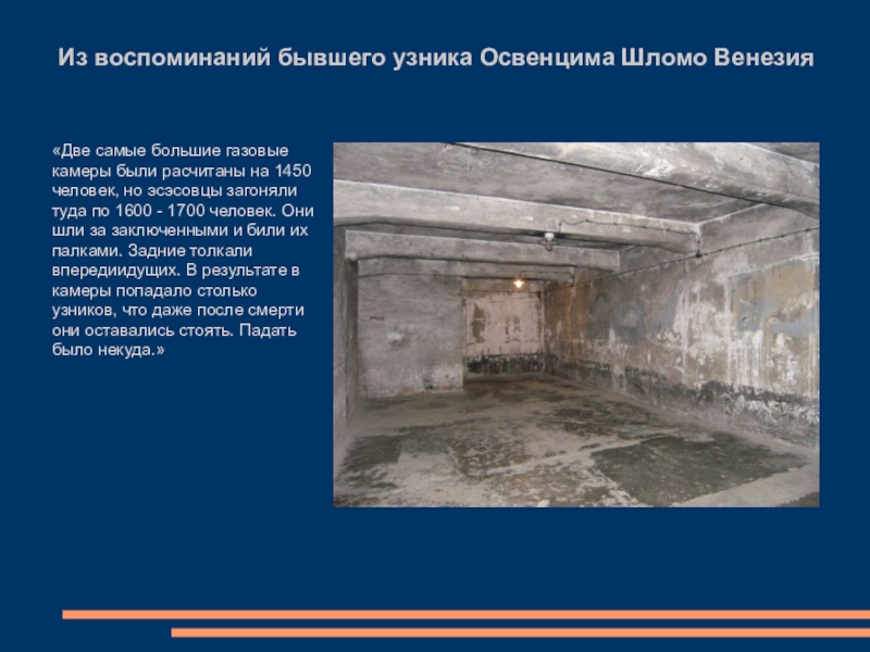 Слайд 21Из воспоминаний бывшего узника Освенцима Шломо Венезия