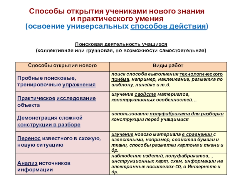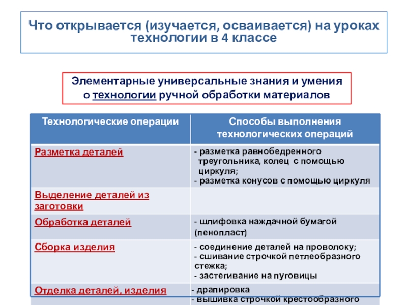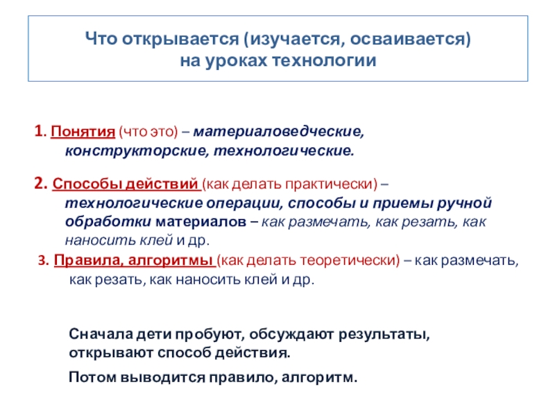2. Способы действий (как делать практически) – технологические операции, способы и приемы ручной обработки материалов – как размечать, как резать, как наносить клей и др.