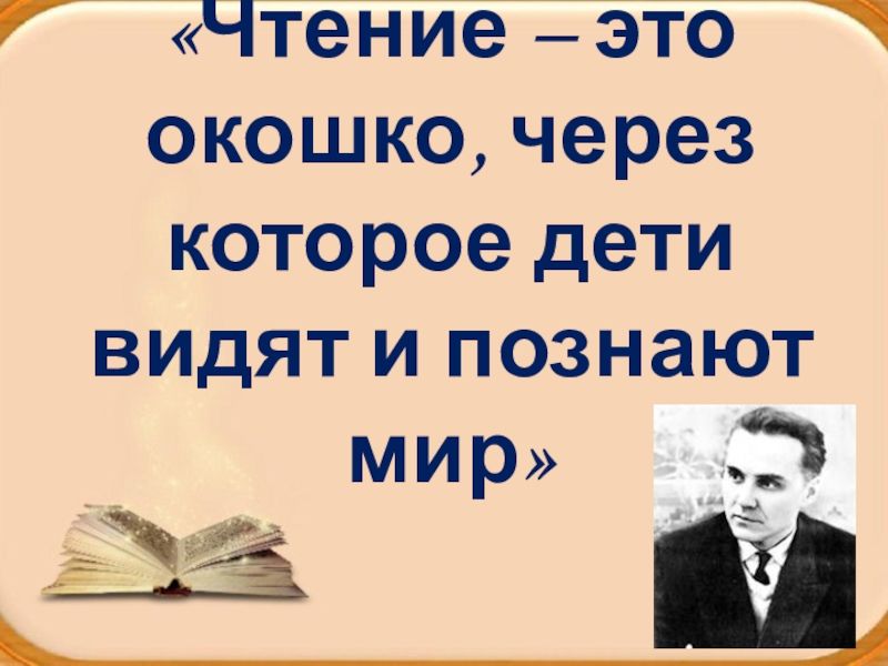 Слайд 1«Чтение – это окошко, через которое дети видят и познают мир»