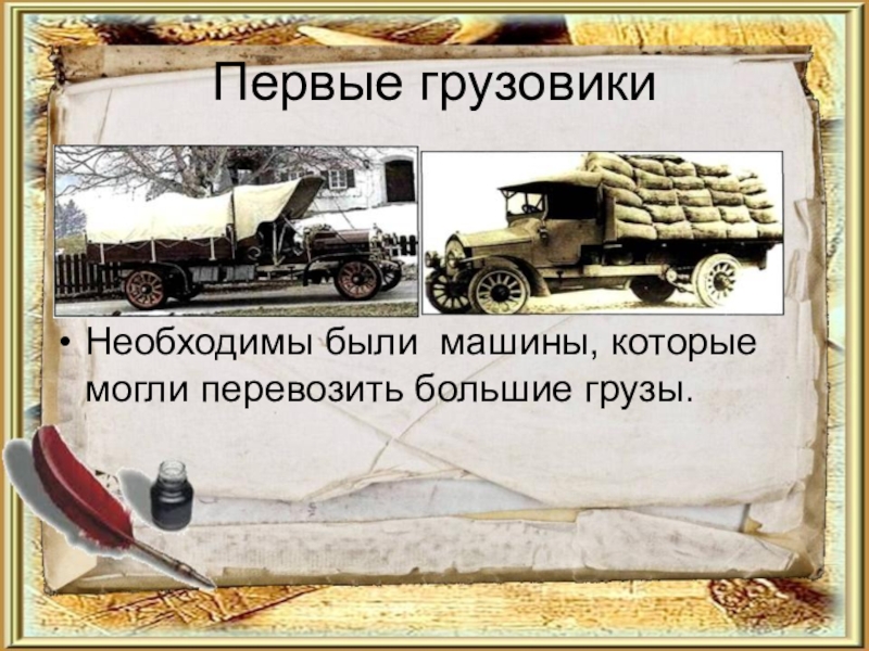 Первые грузовикиНеобходимы были машины, которые могли перевозить большие грузы.