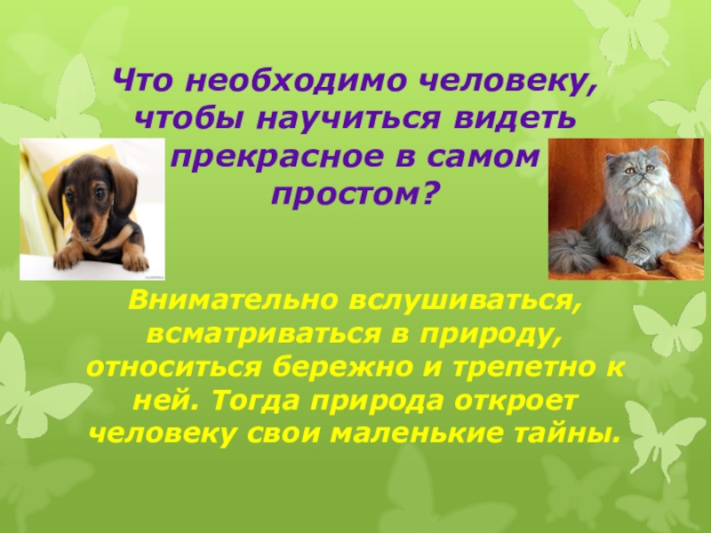 всматриваться в природу, относиться бережно и трепетно к ней. Тогда природа откроет человеку свои маленькие тайны.
