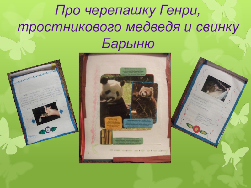 Слайд 3Про черепашку Генри, тростникового медведя и свинку Барыню