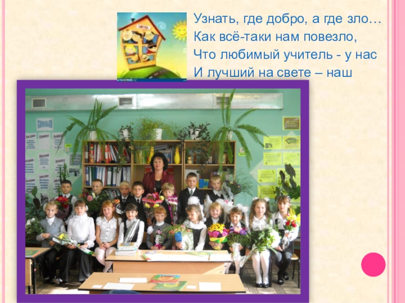 Узнать, где добро, а где зло…Как всё-таки нам повезло,Что любимый учитель - у насИ лучший на свете