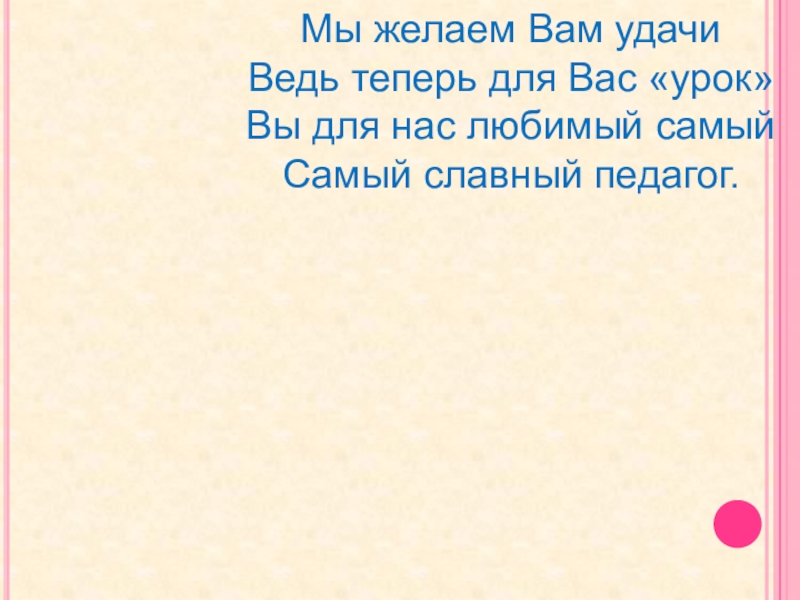Мы желаем Вам удачи Ведь теперь для Вас «урок»Вы для нас любимый самыйСамый славный педагог.