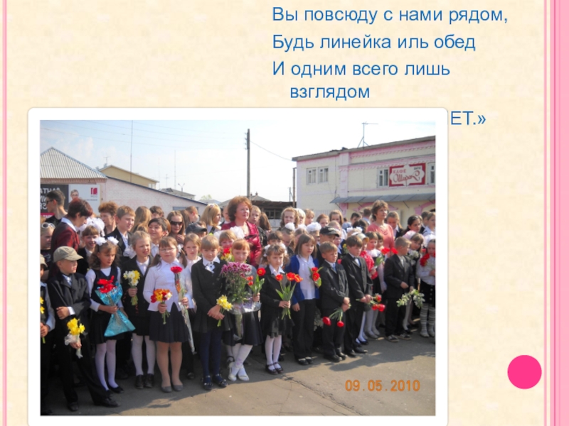 Вы повсюду с нами рядом,Будь линейка иль обедИ одним всего лишь взглядомОбъясните ясно: «НЕТ.»