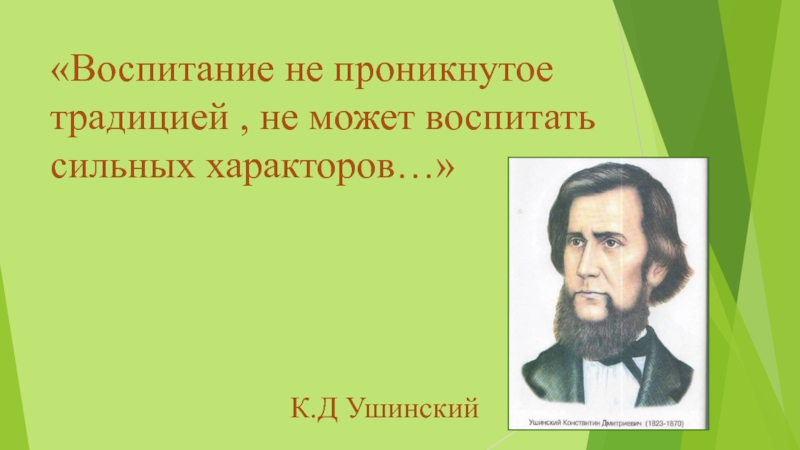 Слайд 4«Воспитание не проникнутое традицией , не может воспитать сильных характоров…»