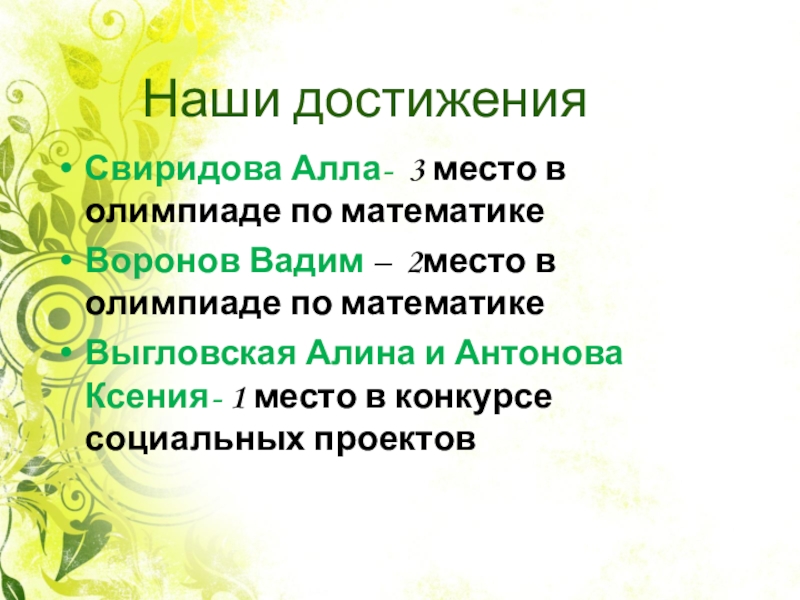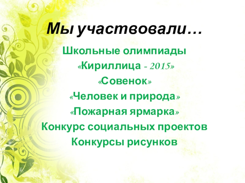 Это сайт презентаций, где можно хранить и обмениваться своими презентациями, докладами, проектами, шаблонами в формате PowerPoint с другими пользователями. Мы помогаем школьникам, студентам, учителям, преподавателям хранить и обмениваться учебными материалами.