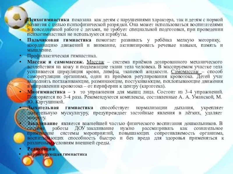 Слайд 35Психогимнастика показана как детям с нарушениями характера, так и детям с