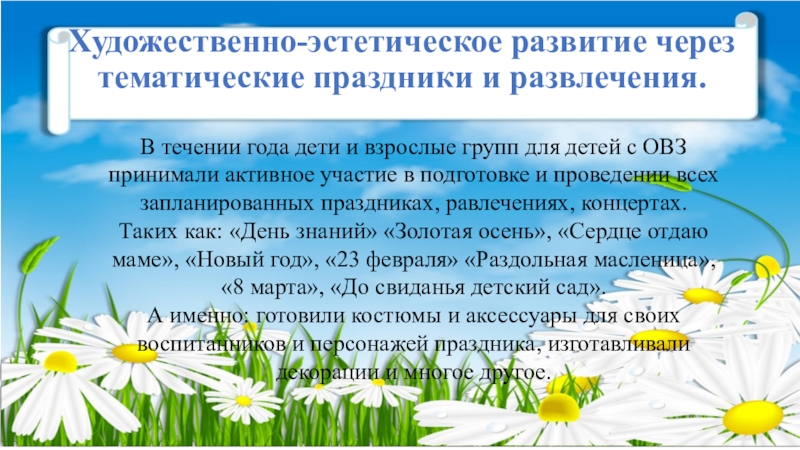 Художественно-эстетическое развитие через тематические праздники и развлечения.