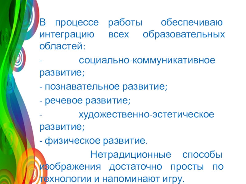 Слайд 7В процессе работы обеспечиваю интеграцию всех образовательных областей: