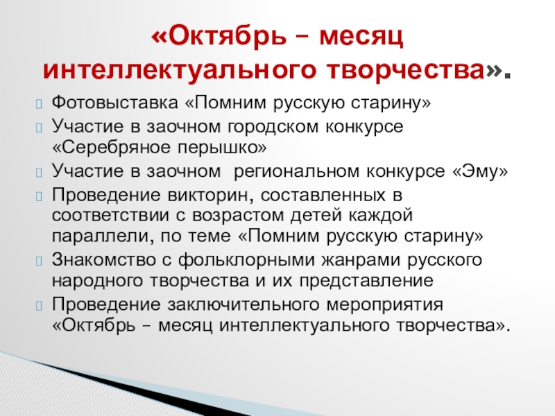 «Октябрь – месяц интеллектуального творчества».