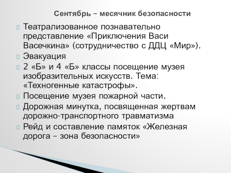Сентябрь – месячник безопасности