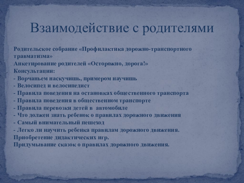 19 декабря выступила на родительском собрании в старшей группе на тему «Профилактика ДТП» и показала развлечение «Викторина по правилам дорожного движения»