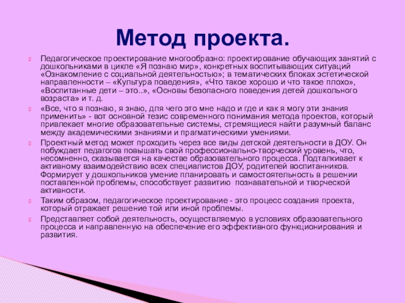 .Патранова И. Проектный метод / И. Патранова //Дошкольное воспитание. - 2007. - № 3. - С. 81.