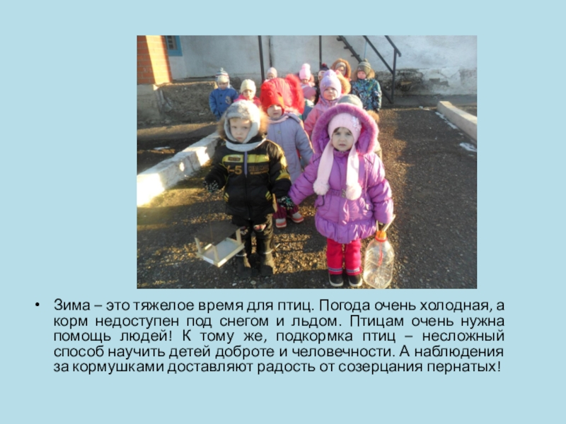 Слайд 3Зима – это тяжелое время для птиц. Погода очень холодная, а