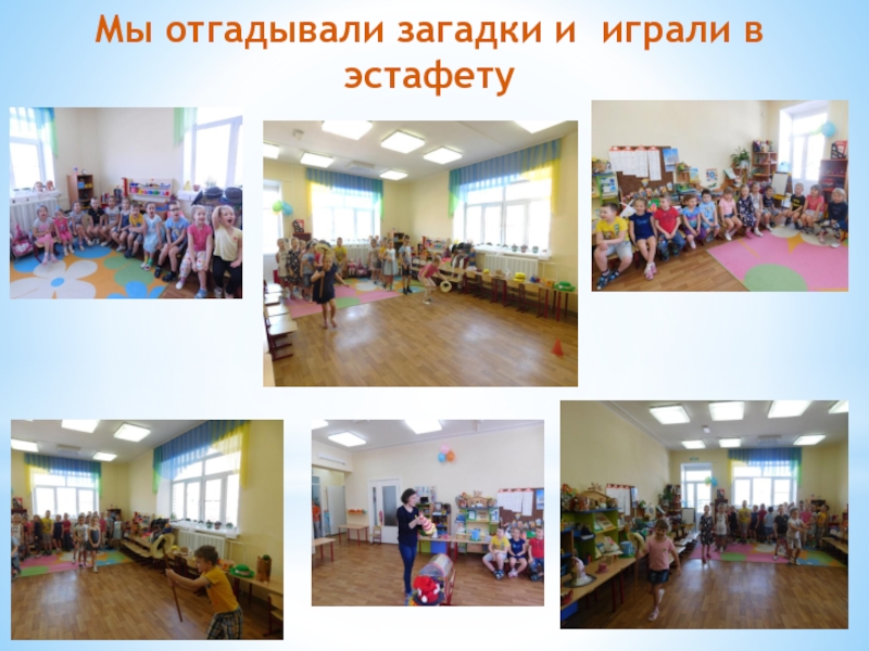 Слайд 2Мы отгадывали загадки и играли в эстафету