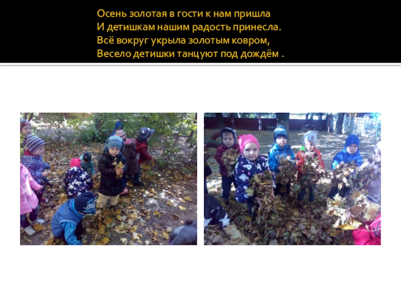 Слайд 3Осень золотая в гости к нам пришла И детишкам нашим радость принесла. Всё