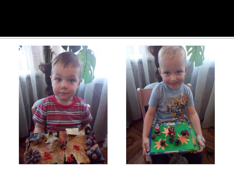 родителям и детям проявить свои творческие фантазии; - способствовать развитию талантов. Описание: Осень-красивая пора! Золотое время года. Именно об этом времени года написано множество произведений. Знакомя детей мы рассказываем об особенностях этого времени года. Его признаков. Итогом работы по теме осень мы решили организовать выставку даров осени. В нашей группе прошла выставка поделок из природного материала! Участниками выставки были дети и родители. Детям, в силу своего возраста, самостоятельно трудно выполнить поделку. В нашей группе является традицией - проведение совместных выставок. Организуя такие выставки мы преследуемым цель-вовлечение родителей в жизнь детского сада. Многие родители откликнулись на участие в выставке. Материалом для поделок послужили: шишки, листья, семечки и многое другое.К сожалению эти поделки быстро утрачивают свой вид. Поэтому мы всё фиксируем в фото отчёте. В результате получились оригинальные поделки.