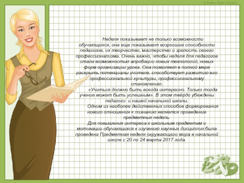 Слайд 4Неделя показывает не только возможности обучающихся, она еще показывает возросшие способности