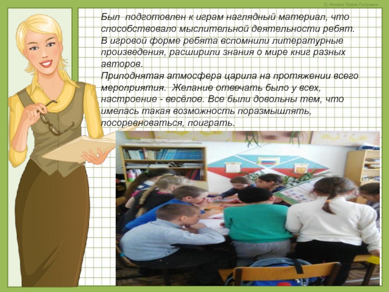 Слайд 21Был подготовлен к играм наглядный материал, что способствовало мыслительной деятельности ребят.