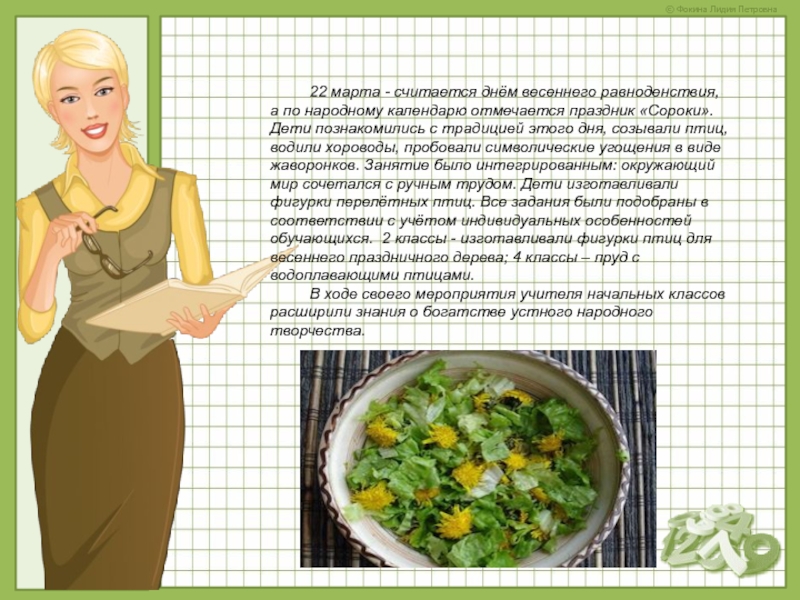Слайд 1021 марта – учитель 2 «А» класса Дудко Лидия Ивановна провела
