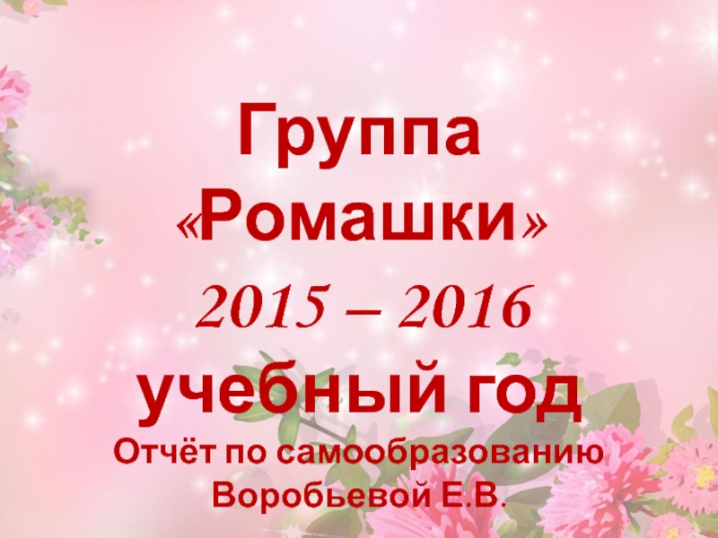 Группа «Ромашки»2015 – 2016 учебный годОтчёт по самообразованию Воробьевой Е.В.