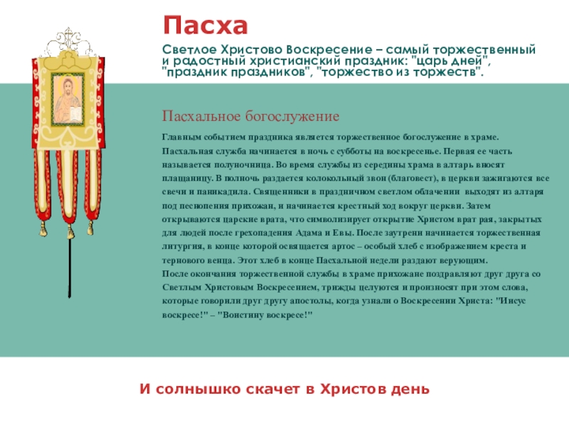 Светлое Христово Воскресение – самый торжественный и радостный христианский праздник: "царь дней", "праздник праздников", "торжество из торжеств".