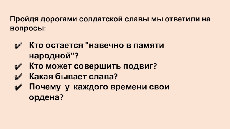 Пройдя дорогами солдатской славы мы ответили на вопросы: