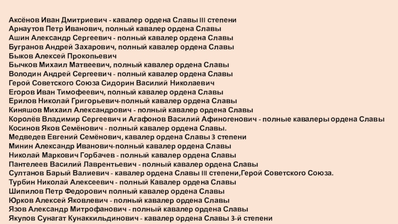 Слайд 30Аксёнов Иван Дмитриевич - кавалер ордена Славы III степени