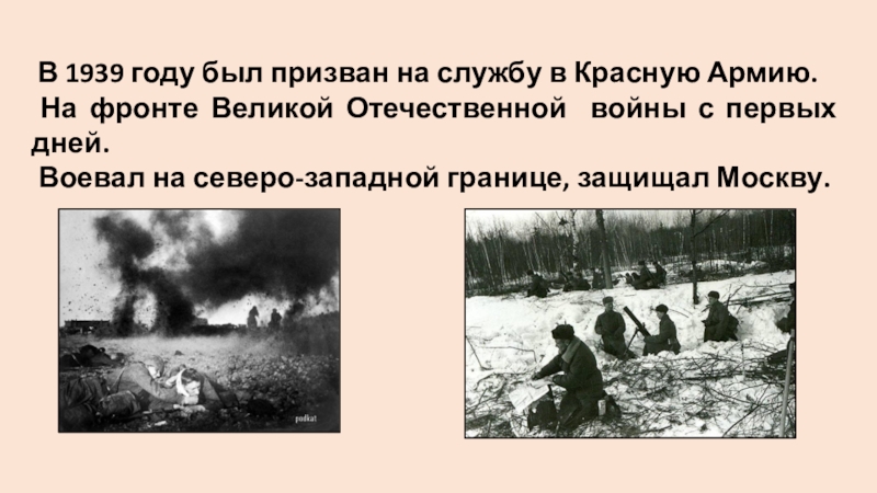 Слайд 17 В 1939 году был призван на службу в Красную Армию.